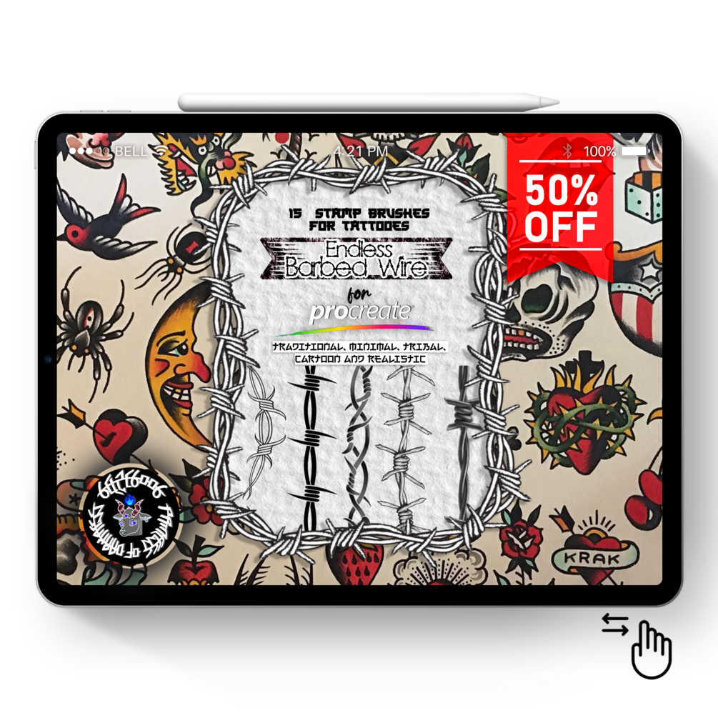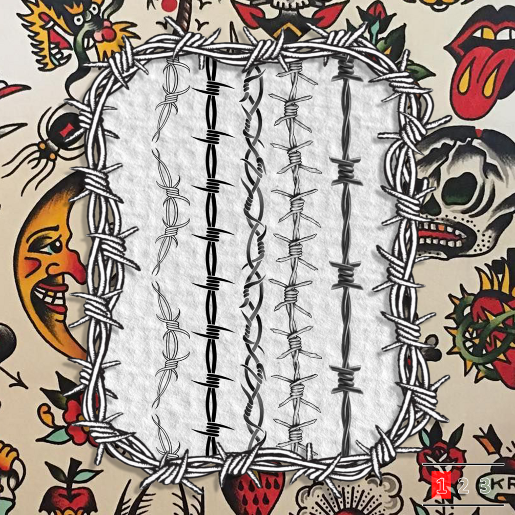 ✏ 15 Endless Barbed Wire Stamp Brushes for Tattos: Traditional, Minimal, Tribal, Cartoon and Realistic - 50% OFF!